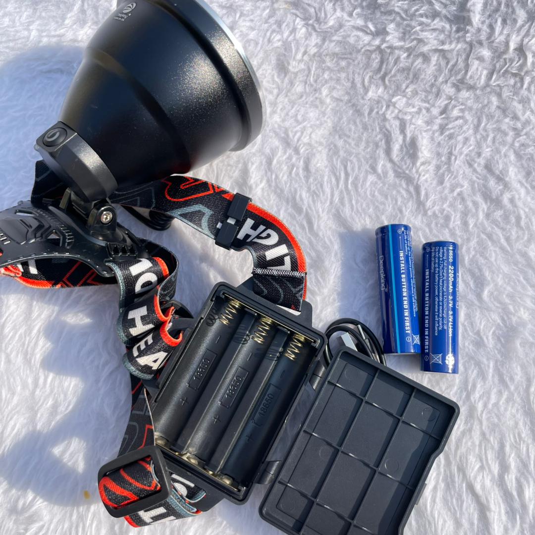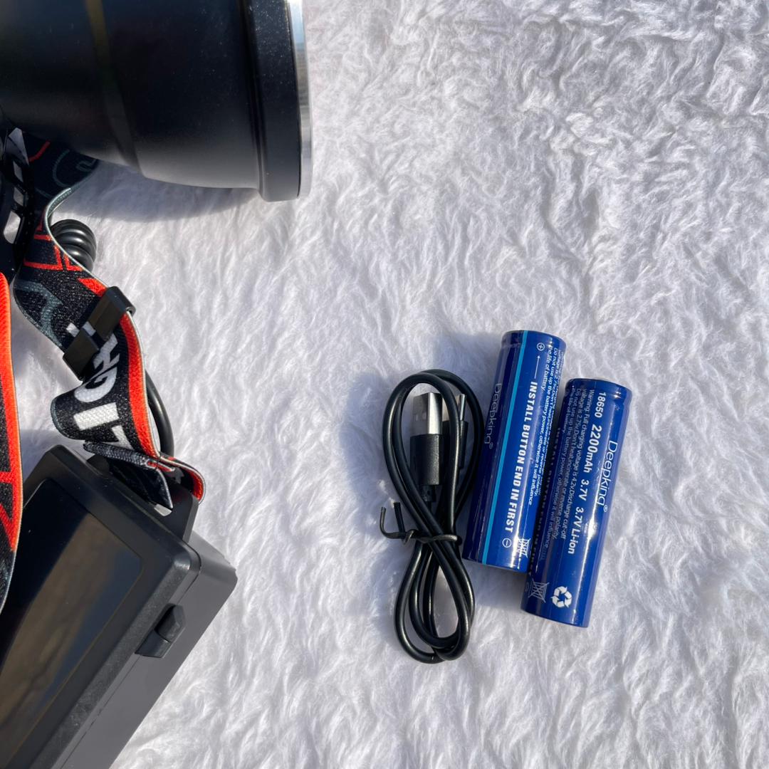 چراغ پیشانی شارژی Deepking DK-373 با LED پرقدرت 50 وات، زومدار و ضدآب، مجهز به باتری 18650 و شارژ سریع Type-C، مناسب کمپ و کوهنوردی. روشنایی حبابی