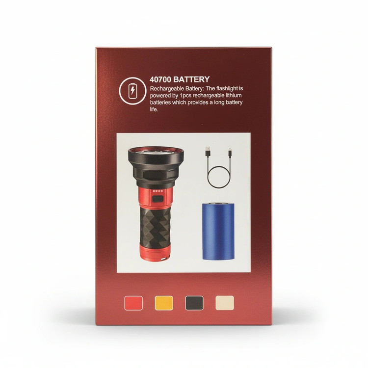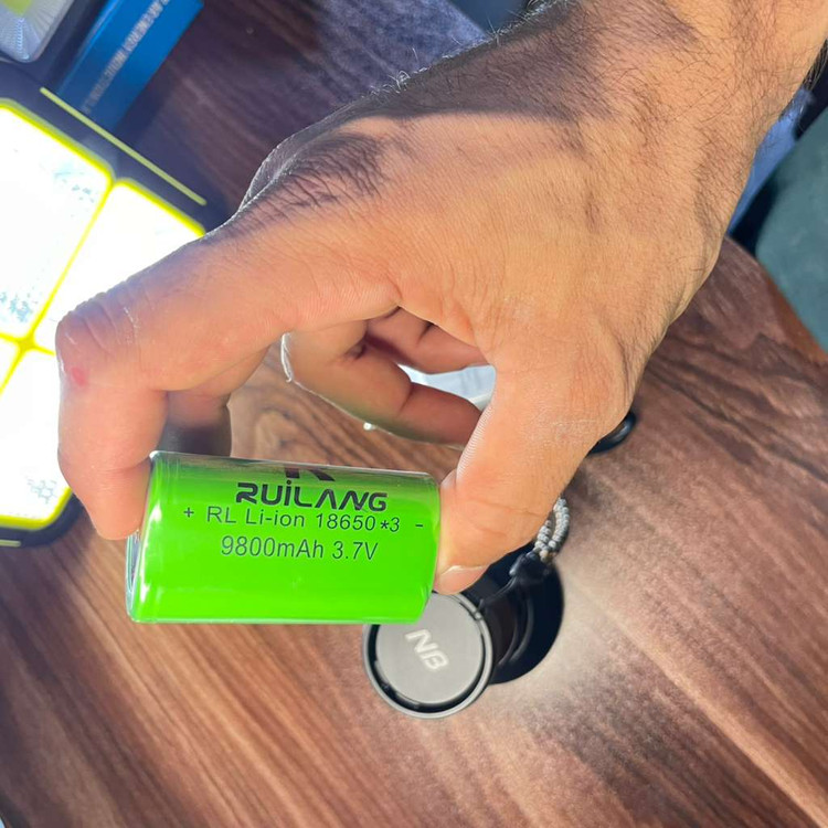 درون جعبه محصول یک باتری لیتیومی قدرتمند RUI LANG 18650 × 3 با ظرفیت 9800 میلیآمپرساعت و ولتاژ 3.7 ولت قرار دارد که به کمک کابل USB شامل بسته، به راحتی قابل شارژ است. این باتری ترکیبی به شما ساعتها روشنایی مداوم میدهد بدون نیاز به تعویض یا باتری یدکی.