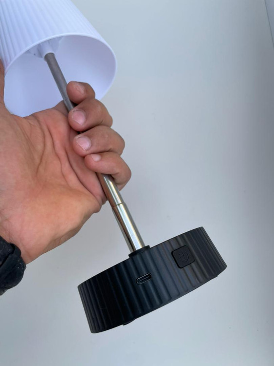 این چراغ مجهز به پایه تلسکوپی فلزی مقاوم، باتری لییتیوم ۱۲۰۰ میلیآمپری قابل شارژ و درگاه Type‑C برای شارژ سریع هست.