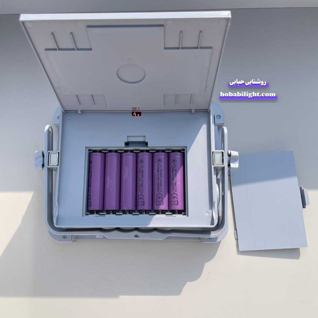 - ۶ عدد باتری لیتیومی ۱۸۶۵۰ قابل تعویض:یکی از مهمترین ویژگیها همین باتریهای بنفش با ظرفیت بالاست (هرکدوم ۴۵ تا ۵۰ گرم وزن دارن، حدود ۱۸۰۰۰ میلیآمپر ساعت مجموعاً).قابل تعویض، قابل سرویس و عمر طولانی. درپوشش ضدآب باعث میشه حتی اگر زیر بارون یا مِه قرار بگیره، خیالت راحت باشه.