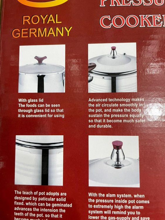 زودپز ROYAL GERMANY مدل Seven Safeguard یک زودپز ایمن، بادوام و پرقدرت است که با سیستم ایمنی حرفهای و جنس فوقالعاده، سالها بدون مشکل برای شما کار خواهد کرد. این محصول هم برای خانوادههای پرمشغله مناسب است و هم برای کسانی که کیفیت پخت و ایمنی برایشان مهم است.