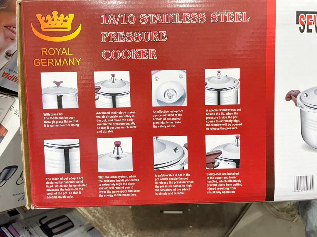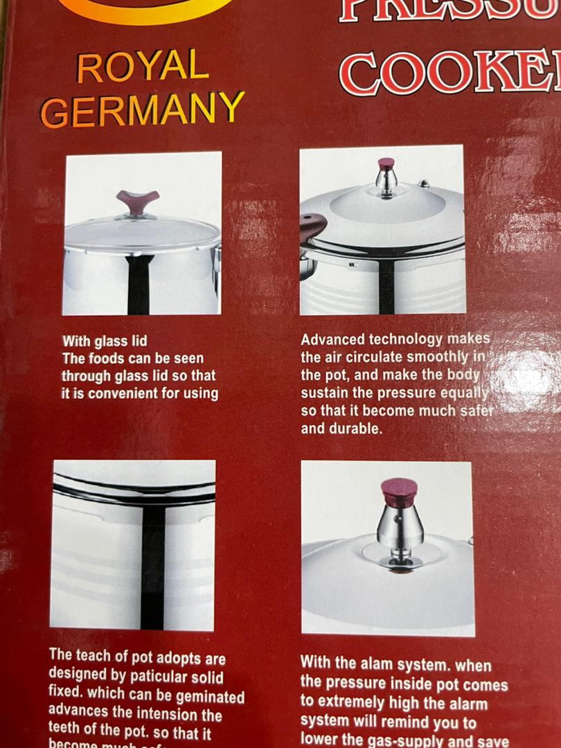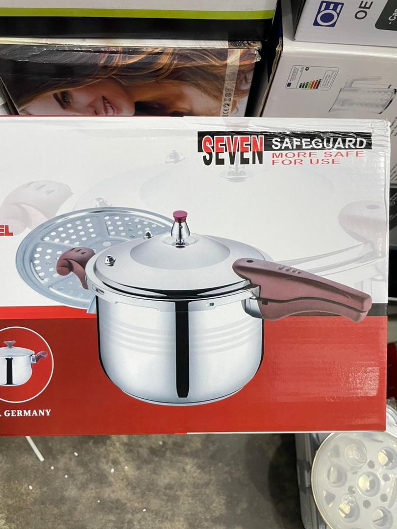زودپز ROYAL GERMANY مدل Seven Safeguard یک زودپز ایمن، بادوام و پرقدرت است که با سیستم ایمنی حرفهای و جنس فوقالعاده، سالها بدون مشکل برای شما کار خواهد کرد. این محصول هم برای خانوادههای پرمشغله مناسب است و هم برای کسانی که کیفیت پخت و ایمنی برایشان مهم است.