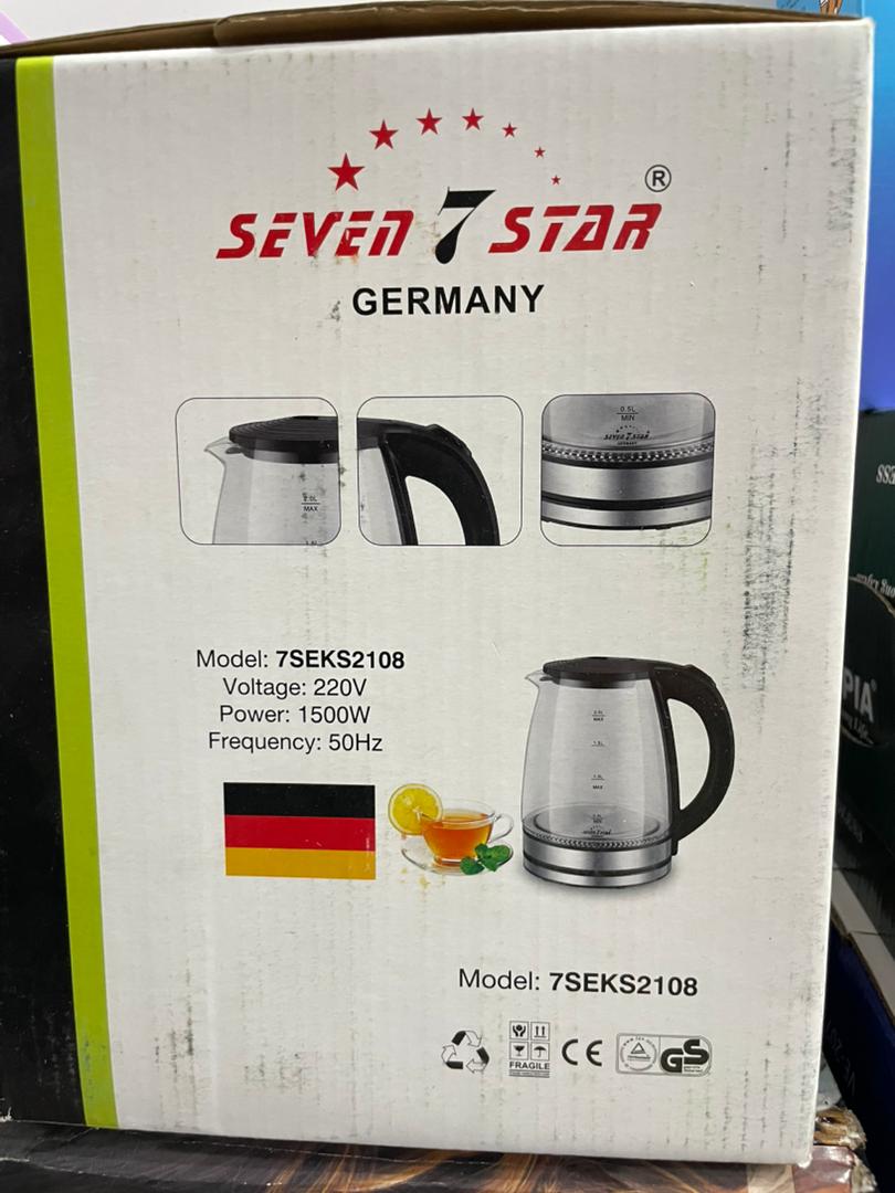 کتری برقی شیشهای SEVEN STAR Germany مدل 7SEKS2108 یک انتخاب ایدهآل برای افرادی است که بهدنبال سرعت، کیفیت و طراحی شیک هستند. این کتری با توان 1500 وات، ظرفیت 2 لیتر و بدنه شیشهای مقاوم حرارت، آب را در کمترین زمان ممکن به جوش میرساند و مصرف انرژی کمی دارد.