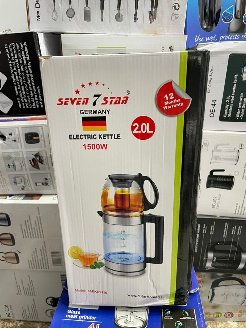 بر اساس تصاویر، این محصول یک کتریبرقی و چایساز شیشهای – استیل از برند Seven 7 Star (به ادعای بستهبندی: Germany) است. ظرفیت 2 لیتری، توان 1500 وات و طراحی بدون سیم 360 درجه دارد. در ادامه مشخصات کامل و توضیح حرفهای مخصوص فروشگاه برایت نوشتم: