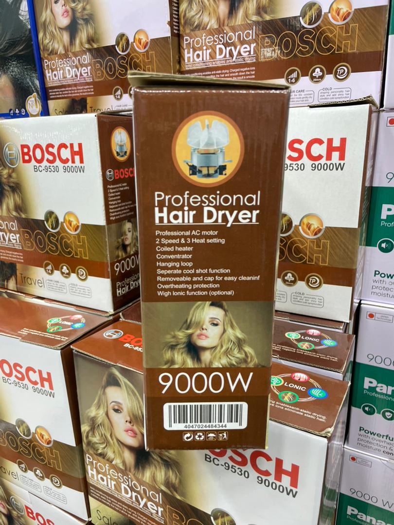 سشوار Bosch BC‑9530 یک مدل حرفهای و سالنی با موتور AC قدرتمند است که برای استفاده طولانیمدت و خشککردن سریع و بدون آسیب به مو طراحی شده است. این دستگاه با توان اسمی 9000W، عملکرد پرقدرتی ارائه میدهد و برای آرایشگران و استفاده خانگی کاملاً مناسب است.