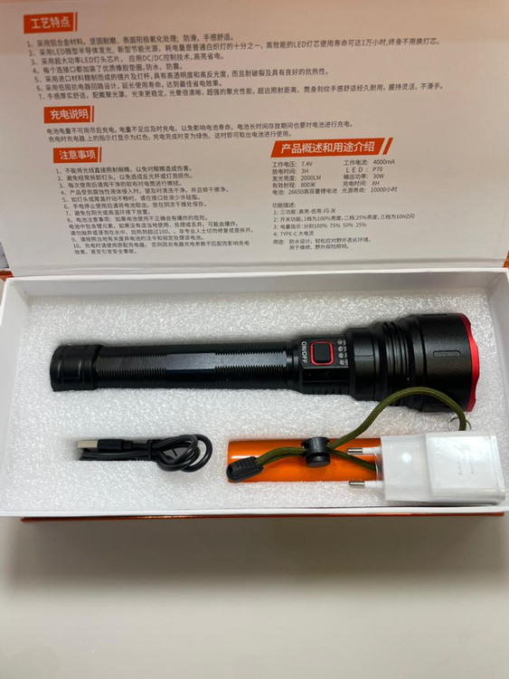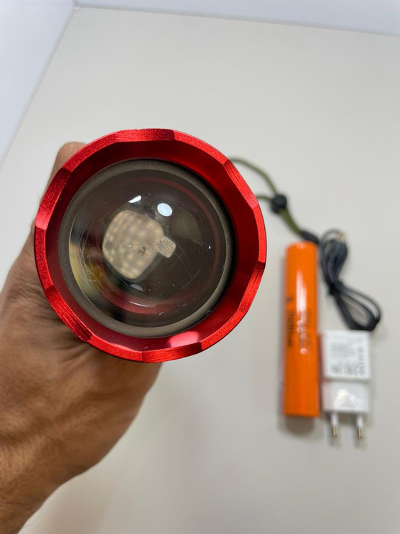 بدنهی چراغ از آلومینیوم فشرده و ضدضربه ساخته شده که در برابر برخورد، رطوبت و تغییرات دمایی مقاومت فوقالعادهای دارد. رنگ بدنه مشکی مات و چشمگیر است که حس حرفهای بودن را از همان نگاه اول منتقل میکند. لنز بزرگ و قابلیت زوم تا ۱۰۰۰ متر امکان تمرکز نور در مسافتهای طولانی را فراهم میکند، بهطوریکه در تاریکی مطلق هم دیدی شفاف و واضح خواهید داشت.