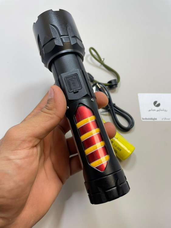 در قسمت انتهایی چراغ، درگاه USB برای شارژ آسان تعبیه شده و باتری بهصورت جداشدنی طراحی شده تا در صورت نیاز بتوان آن را تعویض کرد.