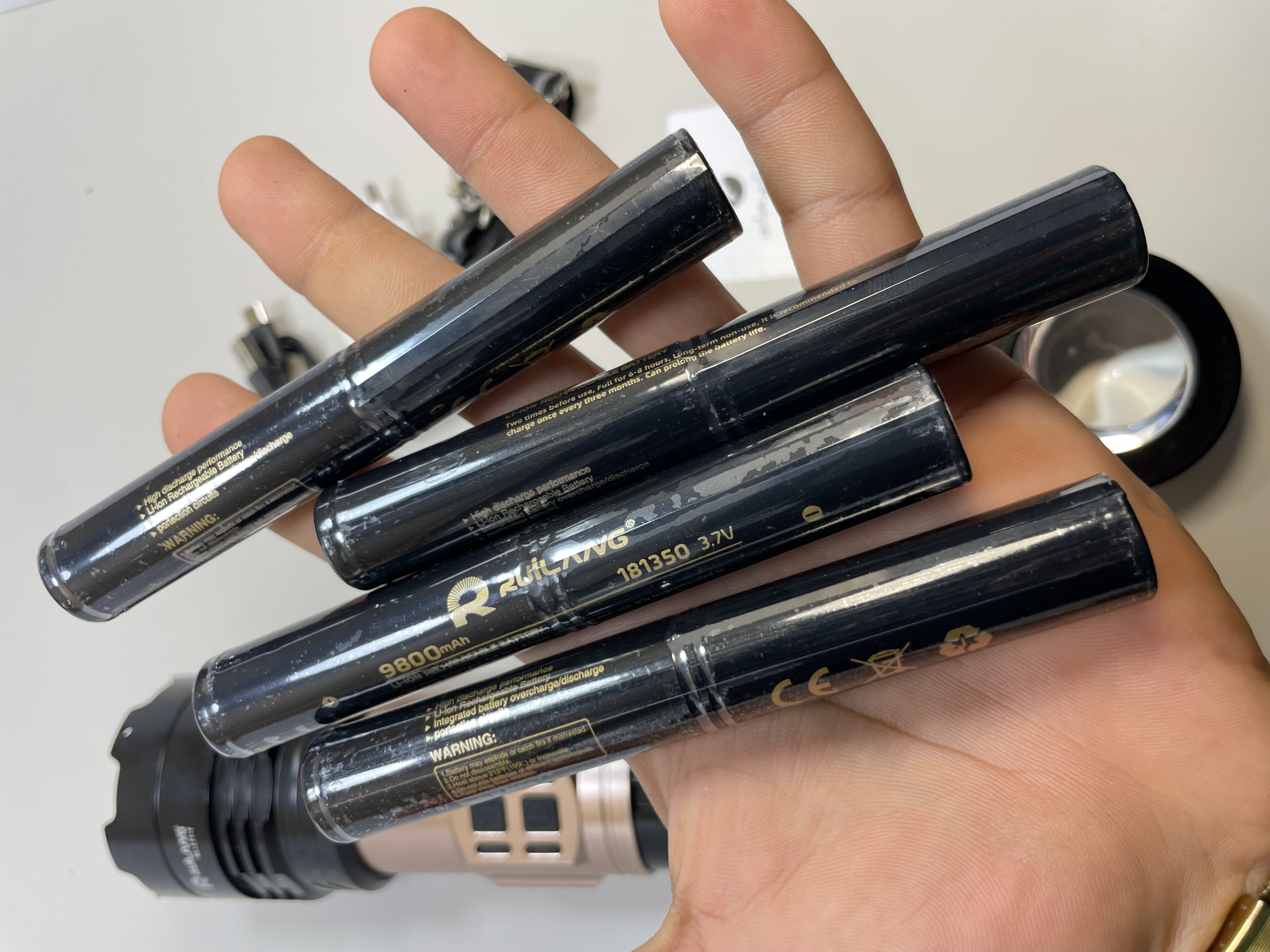 - تعداد و نوع باتری: این مدل از ۴ عدد باتری لیتیومی قابل شارژ از نوع ۱۸۱۳۵۰ (مشابه ۱۸۶۵۰ اما با ابعاد کمی متفاوت و معمولاً ظرفیت بالا) استفاده میکند.