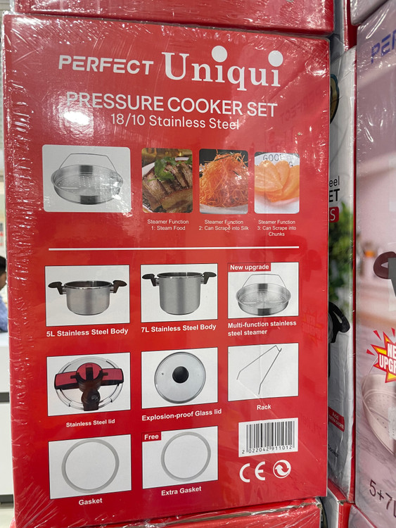 سرویس زودپز استیل PERFECT Uniqui دو قلو 5+7 لیتری بخارپزدار