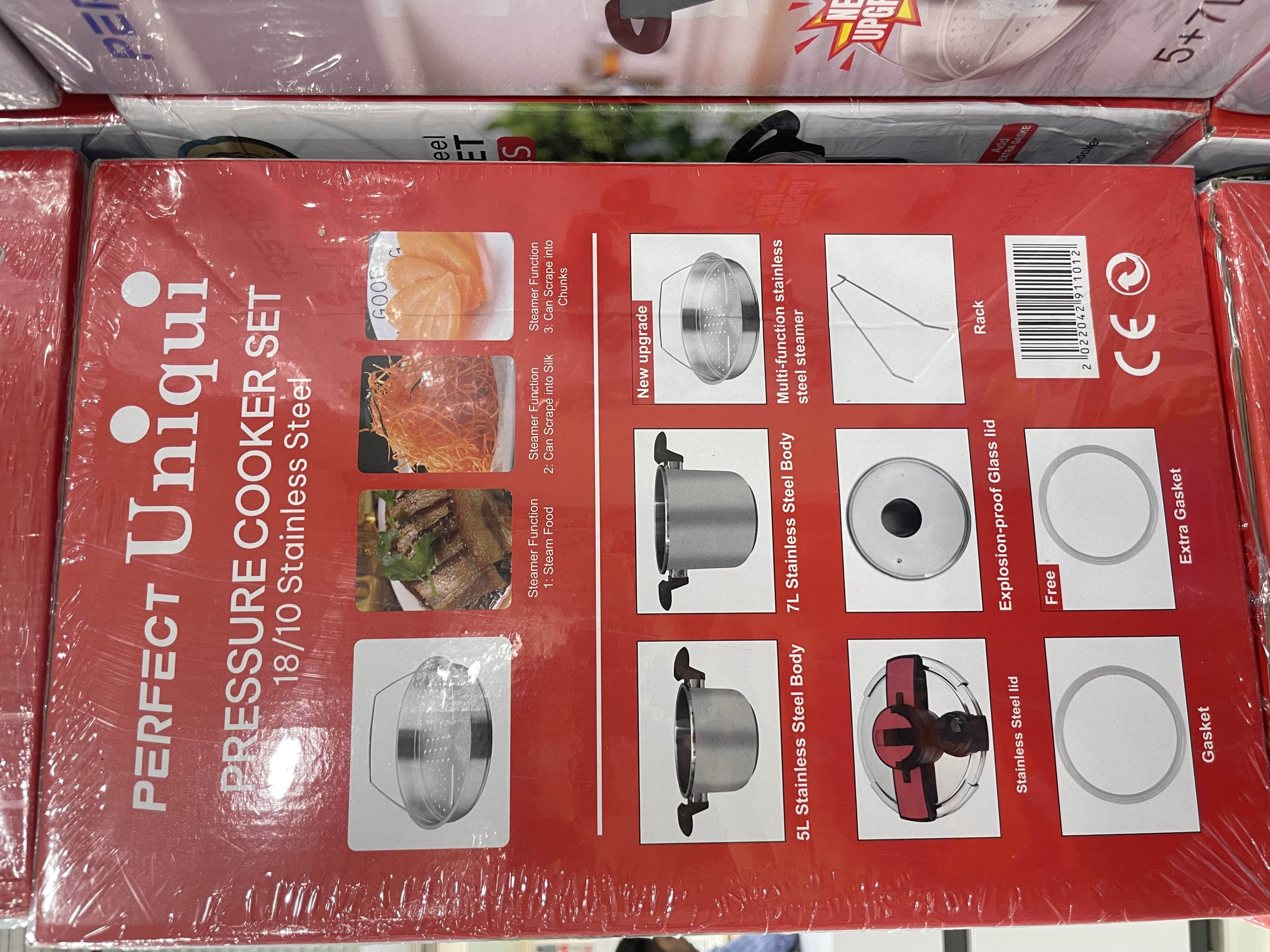 سرویس زودپز استیل PERFECT Uniqui دو قلو 5+7 لیتری بخارپزدار