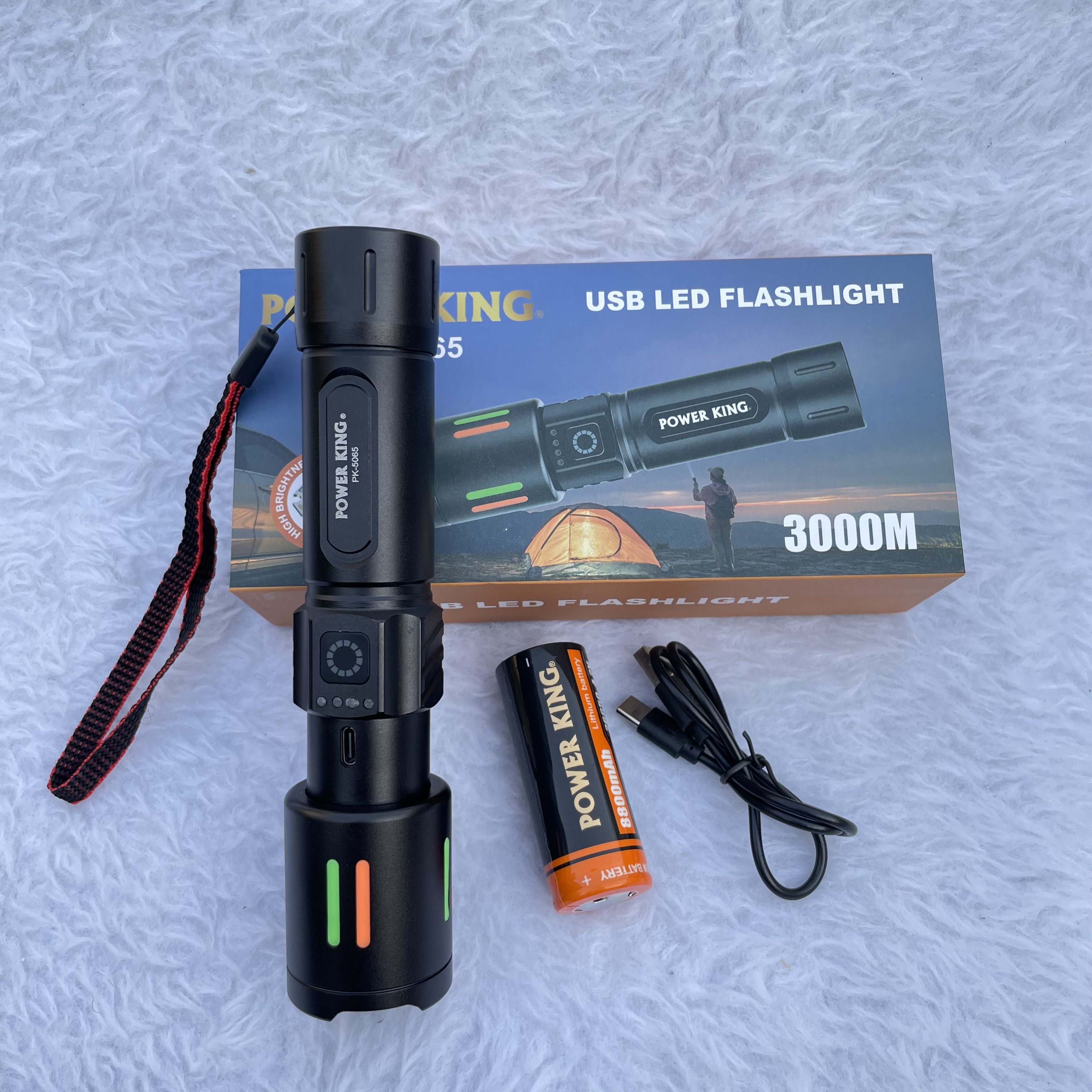 - برد نور فوقالعاده قوی:تابش نور تا ۳۰۰۰ متر (برد واقعی و کاربردی ۳۰۰ تا ۵۰۰ متر)، مناسب محیطهای باز و تاریک مثل کمپ طبیعت، کوه، یا باغ.