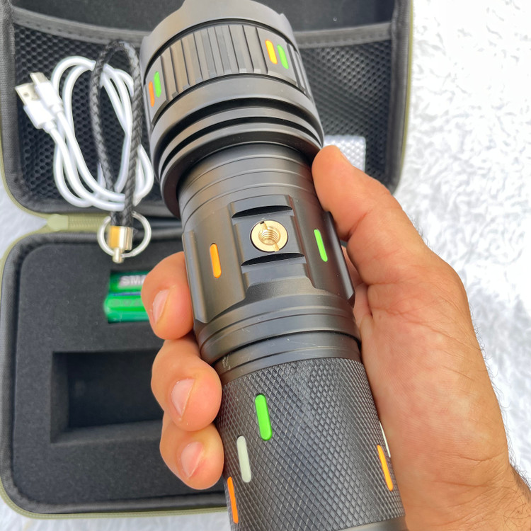 - درگاه نصب سهپایه: وجود رزوه استاندارد بدنه باعث میشود بتوانید چراغ قوه را روی سهپایه متصل کنید و دستتان آزاد باشد—ویژه برای شکار، نگهبانی یا ساخت محتوا.