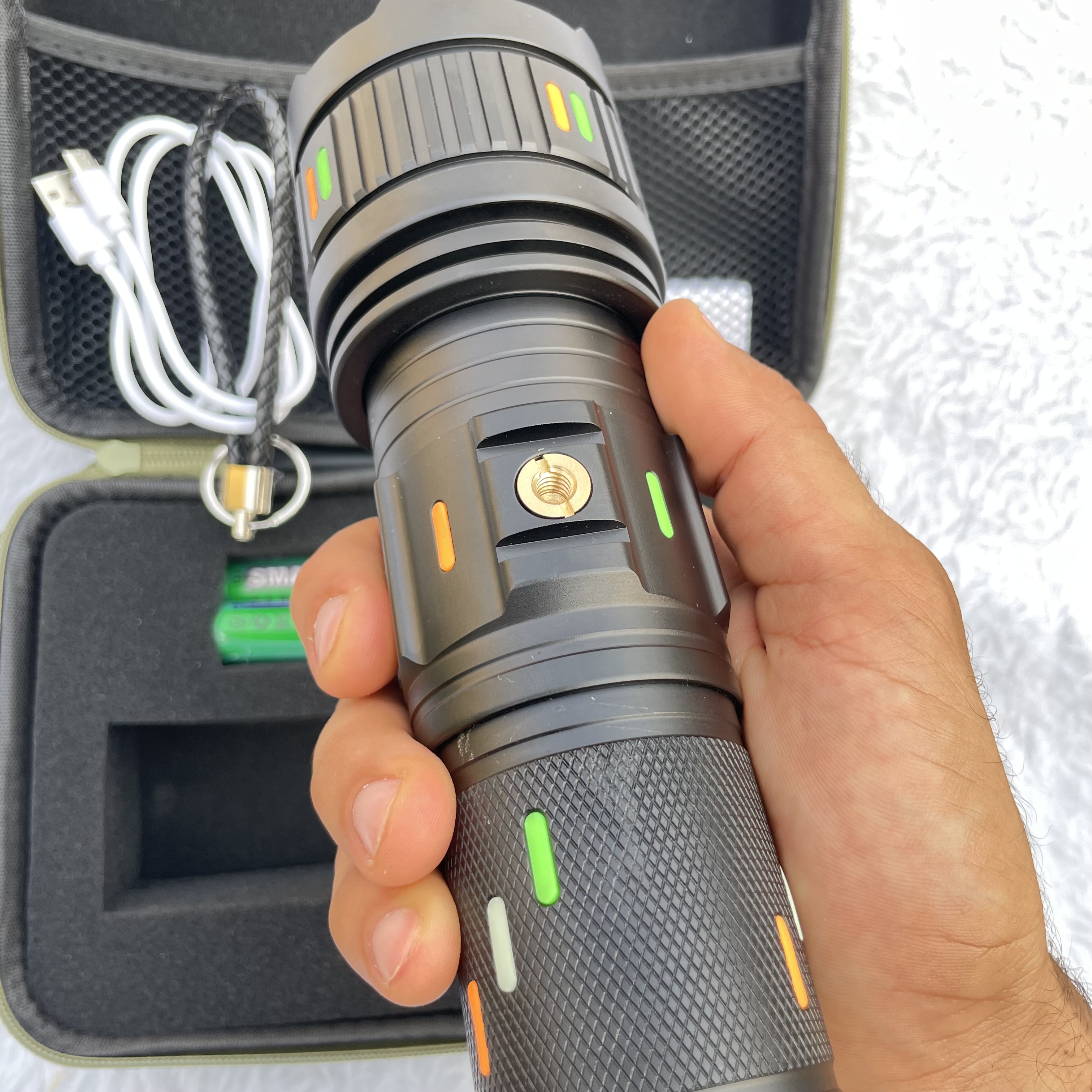 - درگاه نصب سهپایه: وجود رزوه استاندارد بدنه باعث میشود بتوانید چراغ قوه را روی سهپایه متصل کنید و دستتان آزاد باشد—ویژه برای شکار، نگهبانی یا ساخت محتوا.