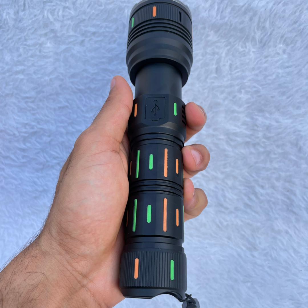 جنس بدنه آلومینیوم مقاوم، رنگبندی چراغهای جانبی (سبز و نارنجی) و دکمه لمسی با طراحی مدرن، تجربهای متفاوت از یک چراغقوه حرفهای را به شما میدهد. علاوه بر این، باتری پرقدرت 8000 میلیآمپرساعت، امکان کار تا 9 ساعت مداوم را فراهم کرده و با درگاه USB تعبیهشده، قابلیت شارژ آسان دارد.
