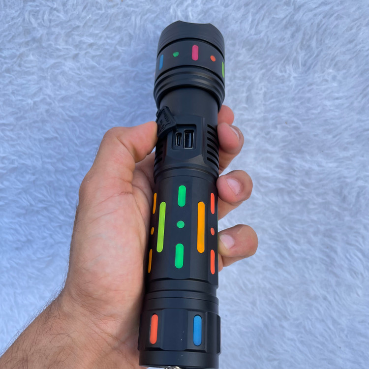 🔋 منبع تغذیه این چراغ قوه یک باتری شارژی قدرتمند YEMAO 18650 با ظرفیت بالا است که از طریق درگاه USB / Type-Cبهراحتی شارژ میشود. همچنین این مدل دارای قابلیت پاوربانک بوده و میتواند در شرایط ضروری گوشی موبایل یا دستگاههای دیگر شما را شارژ کند.