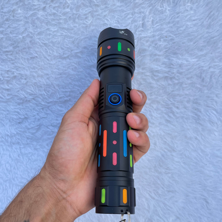 بدنه این چراغ قوه از آلومینیوم مقاوم و پوشش رنگی ضد لغزش ساخته شده که علاوه بر زیبایی، دوام و ماندگاری بالا را تضمین میکند. رنگبندی نورانی بدنه، جلوهای خاص و متفاوت به این مدل بخشیده و آن را از سایر چراغ قوههای ساده متمایز کرده است.